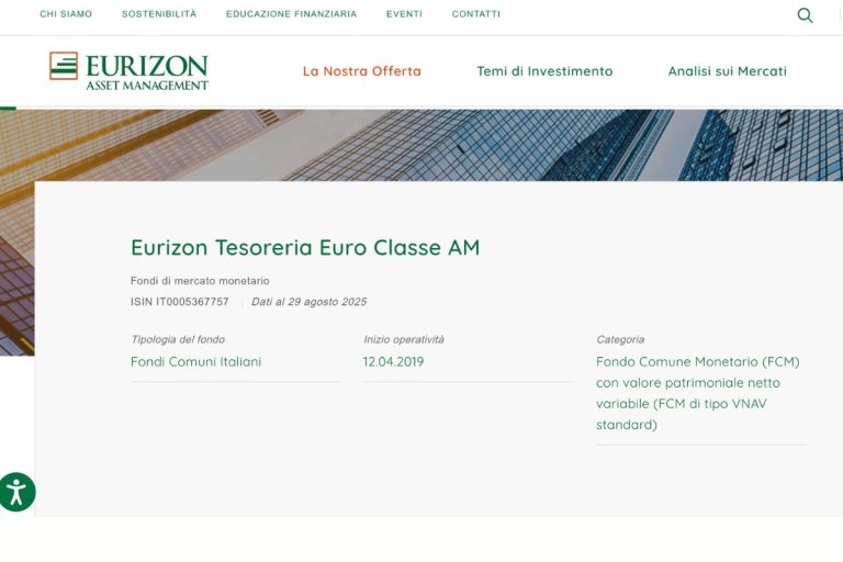 Stai cercando informazioni su Eurizon Tesoreria Euro Classe AM (ISIN: IT0005367757)? Allora sei nel posto giusto. In questa guida completa analizzeremo le caratteristiche principali del fondo, i costi, il profilo di rischio e le performance ipotetiche. Leggi tutto…