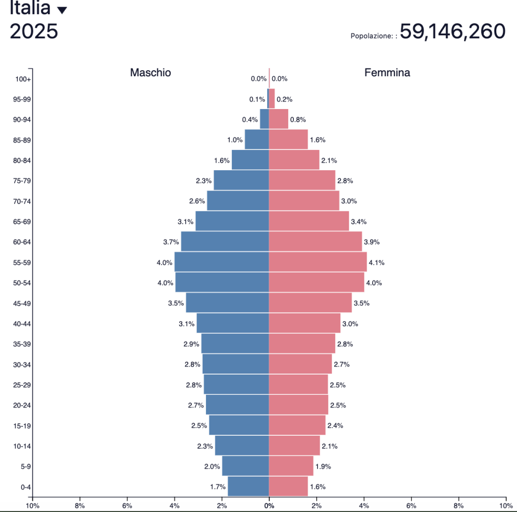 Fonte: Piramide demografica Italia, 2025 – popultaionpyramid.net