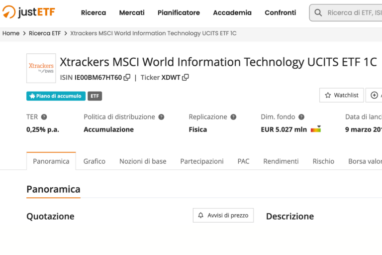 Se stai cercando informazioni su Xtrackers MSCI World Information Technology UCITS ETF, identificato con ISIN IE00BM67HT60 e ticker XDWT, sei nel posto giusto perché oggi analizzerò nel dettaglio questo ETF. Se ti interessa un’esposizione mirata Leggi tutto…