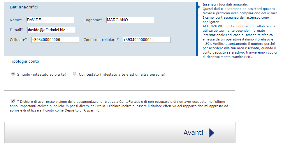 Aprire il Conto Time è semplicissimo. Devi compilare il modulo online di richiesta che trovi sul sito ContoForte.it. Tieni a portata di mano un documento di identità, il codice fiscale e l’IBAN del conto corrente d’appoggio.