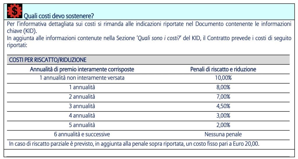 Non è solo un discorso di penali ma di impatto dei costi e di performance. Il contratto è studiato per durare a lungo, quindi se disinvesti dopo pochi anni non ottieni il guadagno sperato e l’impatto dei costi sulla tua posizione risulta maggiore.